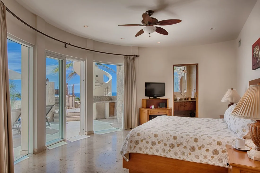 ⁘ Fifth Bedroom Suite: King Bed (beach level) with private bathroom and direct access to pool and beach;